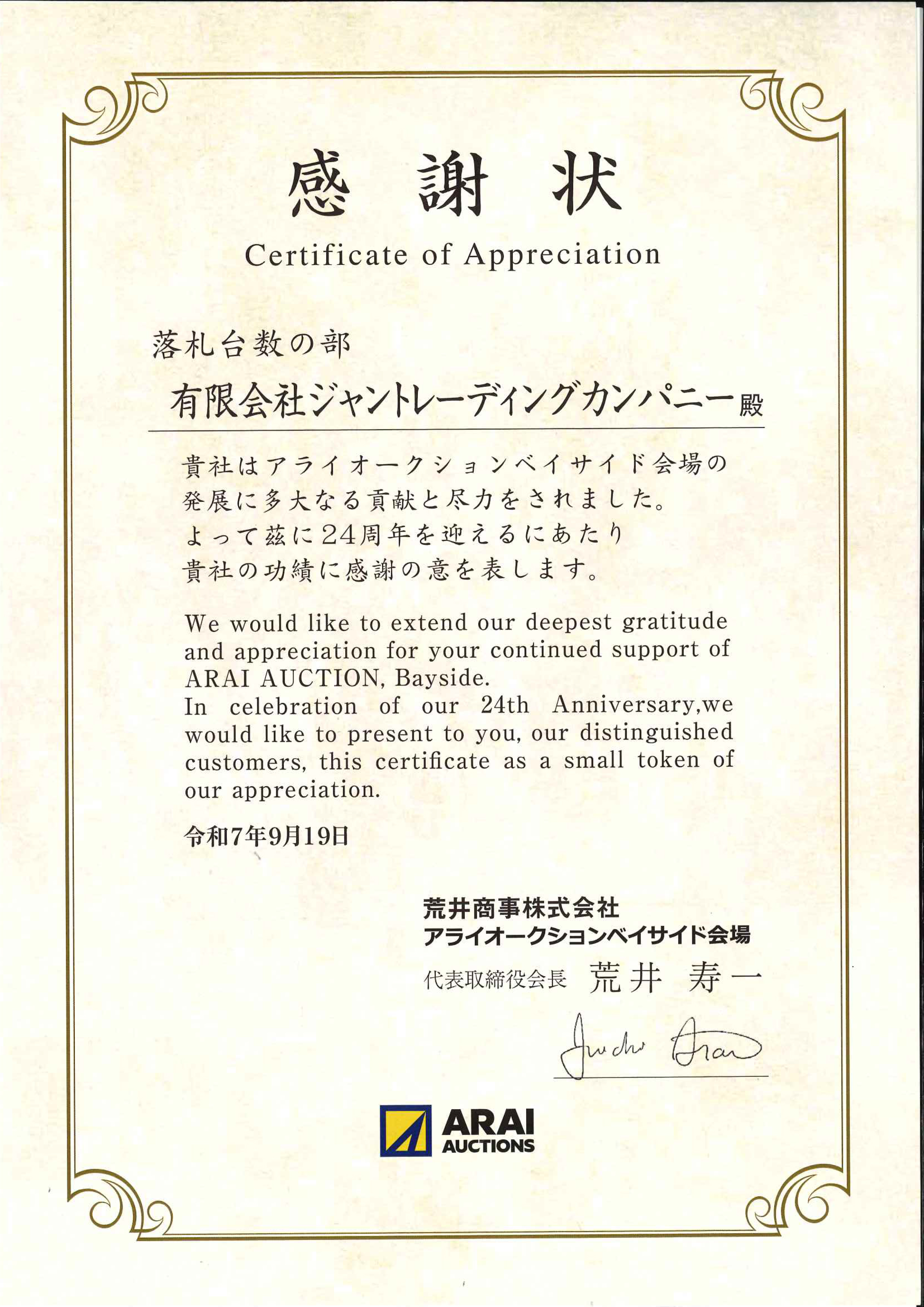 - ARAI AUTO AUCTION GROUP : We are fully aware of your remarkable contributions